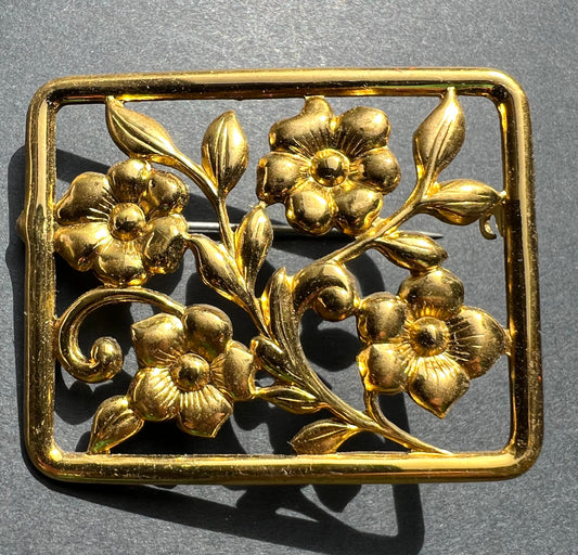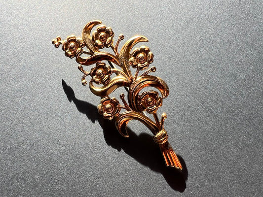 Big Vintage Gold Flourish of Flowers - Exuberant 1940s Brooch