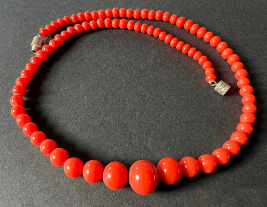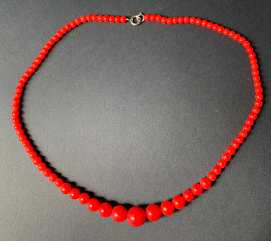 Vintage Graduated Red Glass Bead Necklace - 17.5" long