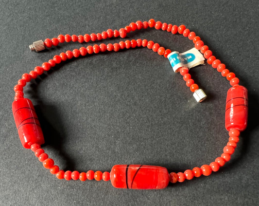 Unusual Vintage Red Glass Bead Necklace - 15" long