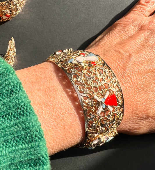 Golden Filigree Vintage Dutch Children Cuff Bracelets