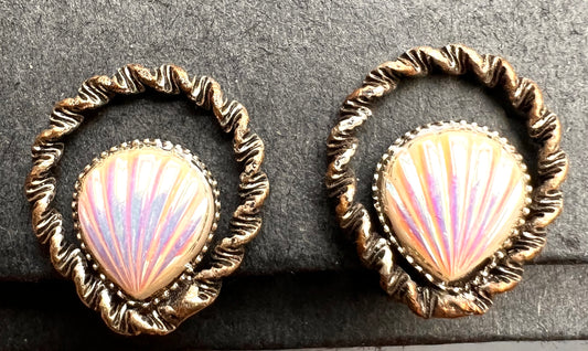 Delightful Iridescent Seashell Vintage Clip On Earrings