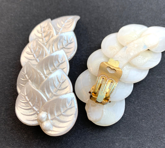 Shimmery White Leaves Vintage Clip-on Earrings
