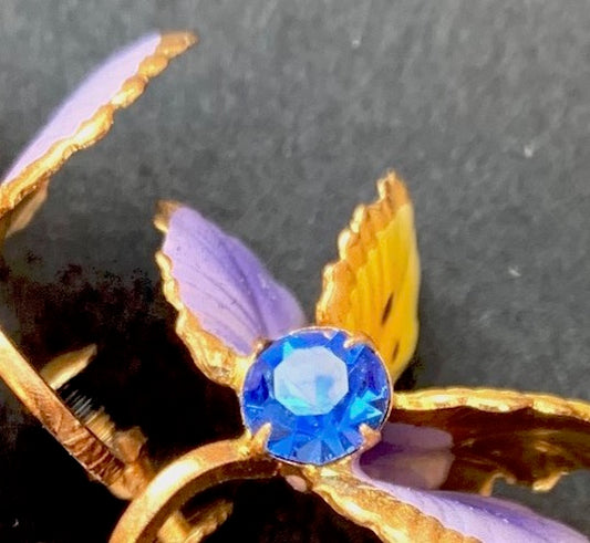 Delightful Vintage Austrian Crystal Violet, Yellow and Blue Clip-On Earrings