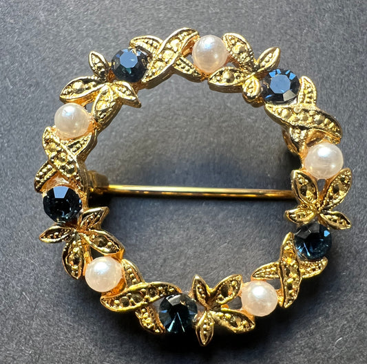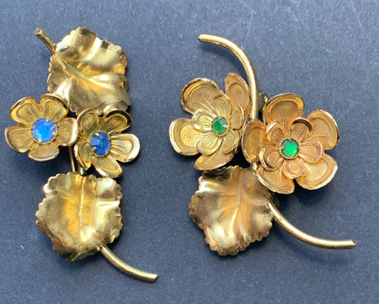 Pretty 1940s Gold Tone Flower Brooch - Blue or green.