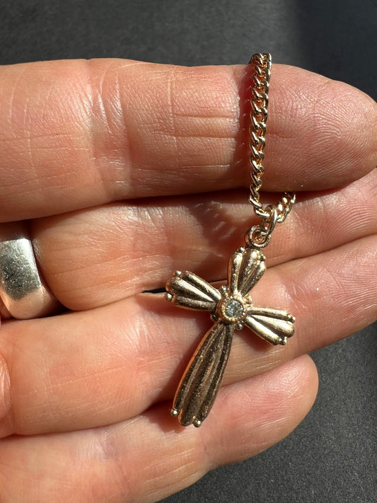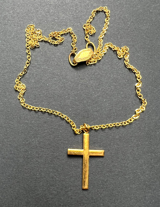 Sweet Vintage Gold Tone Cross Necklace on Original Card