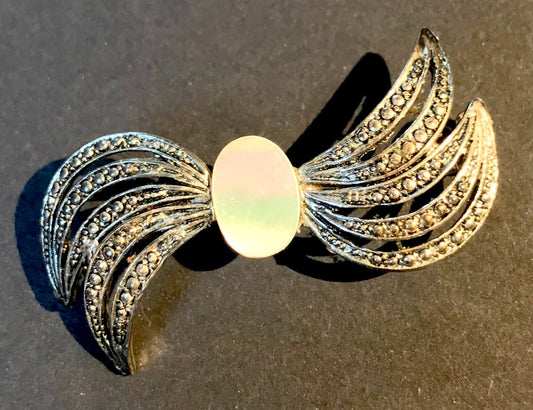 Vintage Marcasite and Mother of Pearl Brooch on Original Card.