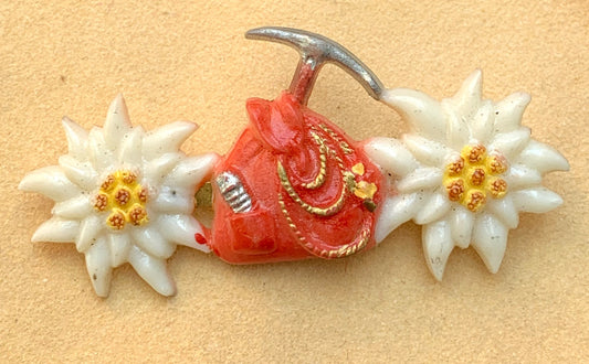 1940s Hand Painted Celluloid Edelweiss and Rucksack Brooches