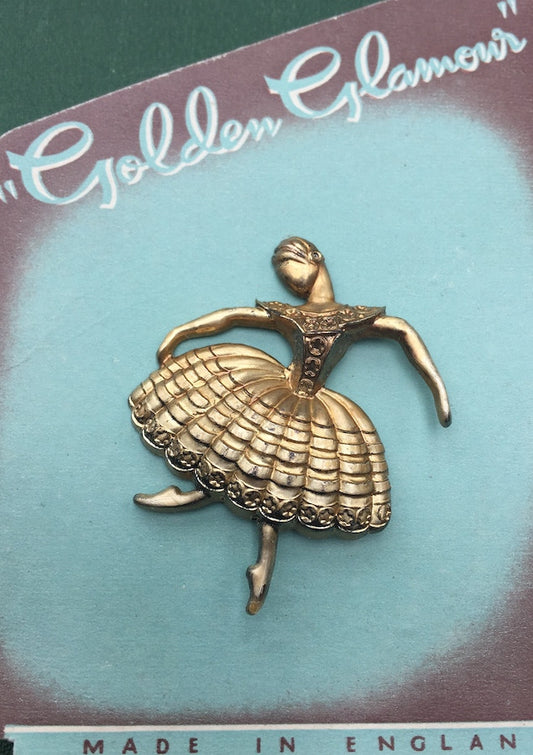 1940s "Golden Glamour" Ballerina Brooch Made in England