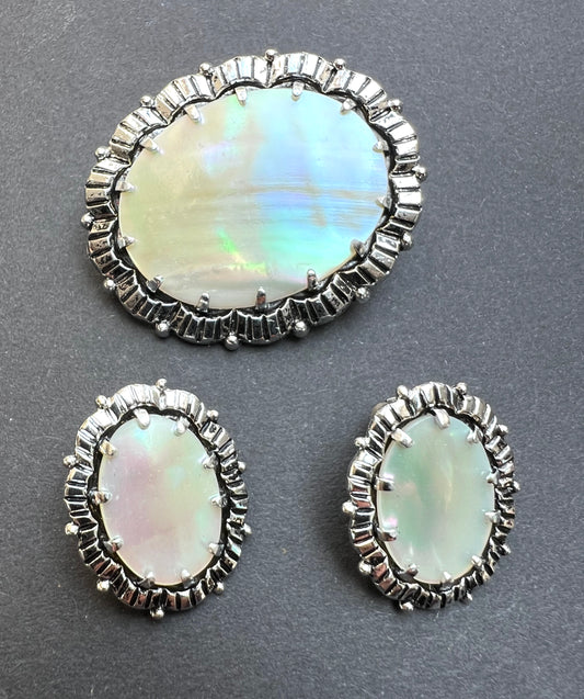 Mother of Pearl Vintage Brooch and Clip-On Earring Sets