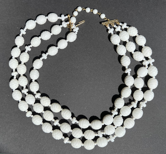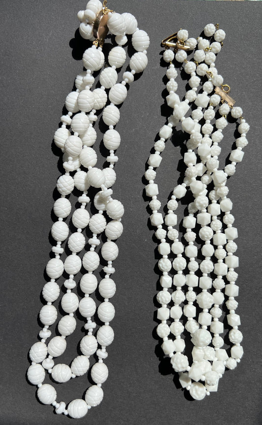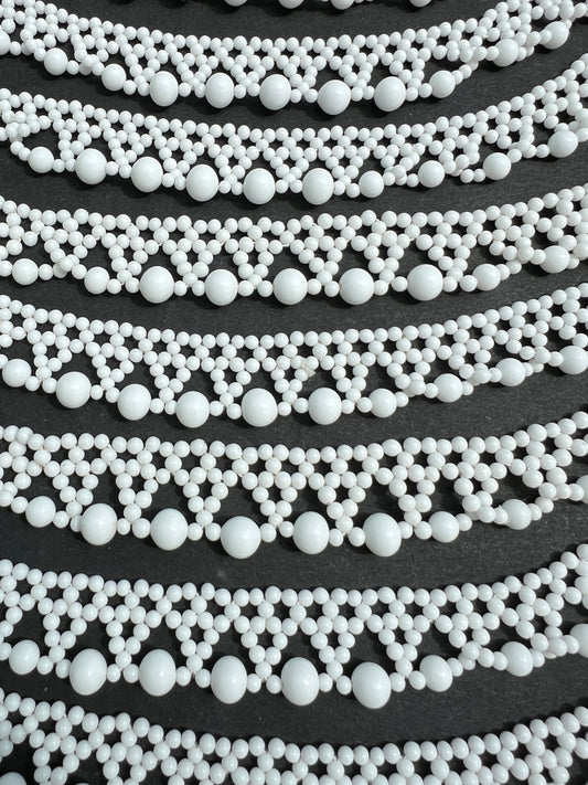 9 Pretty Vintage White Glass Necklaces with no clasps.
