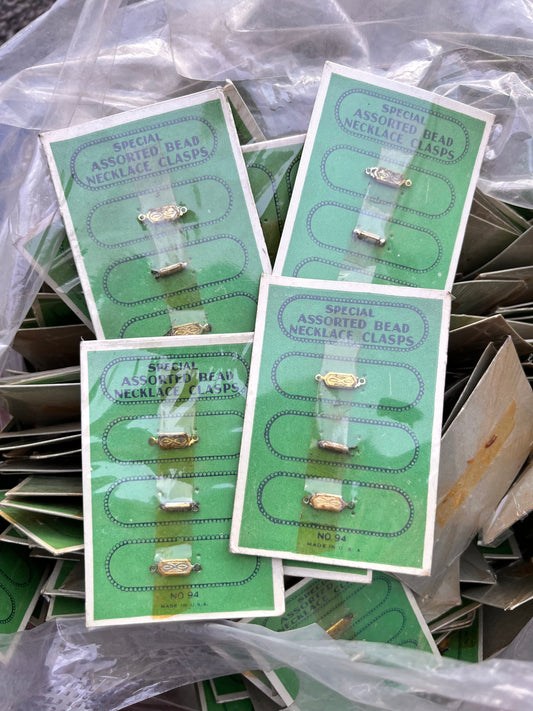2 Vintage Sheets of 3 Bead Necklace Clasps..For Repairing or Making.
