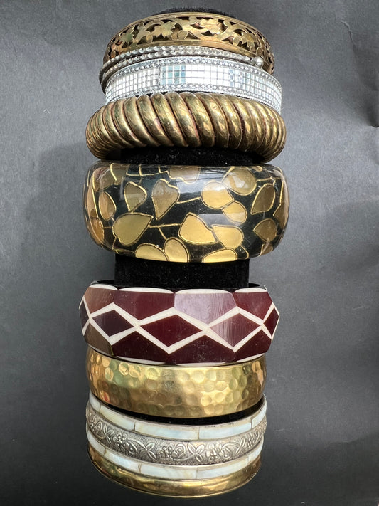 Job Lot of 55 Metal, Wood, Glass and Plastic Bangles