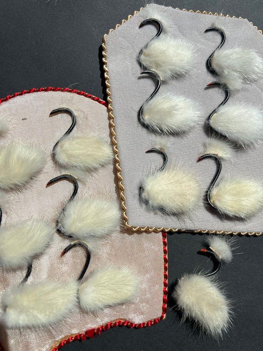 Display Stand of 6 Fluffy Swan Brooches Who Need a Bit of Help.