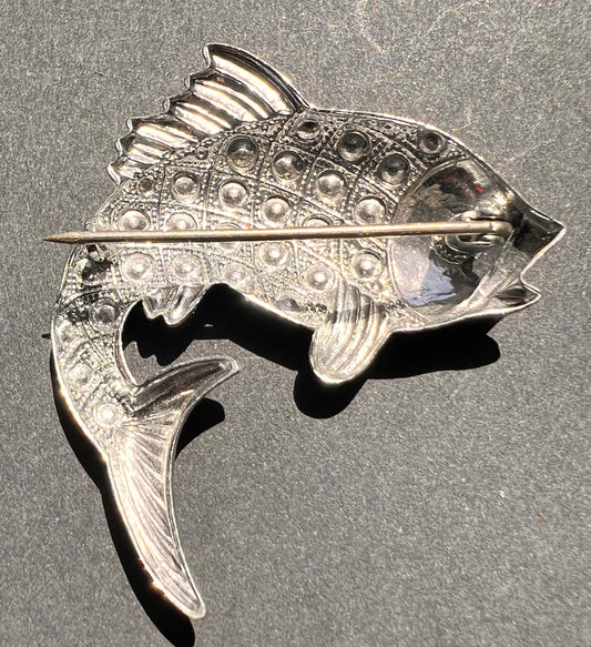 Vintage Faux Marcasite Big Fish Brooch