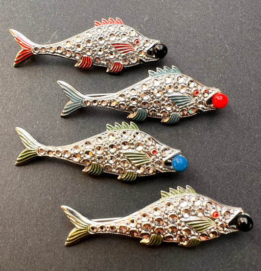 Vintage Faux Marcasite Fish with Ball Brooches