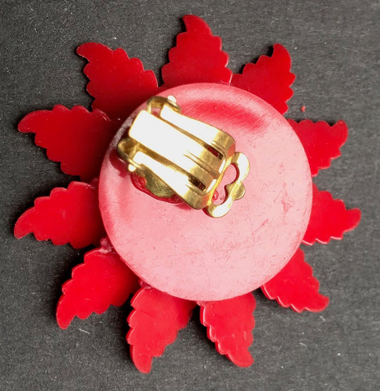 Dramatic Red Vintage Flower Clip-on Earrings