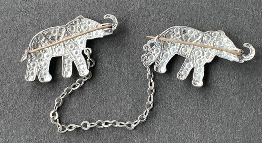 Sparkly Silver 1950s Double Elephant Brooch