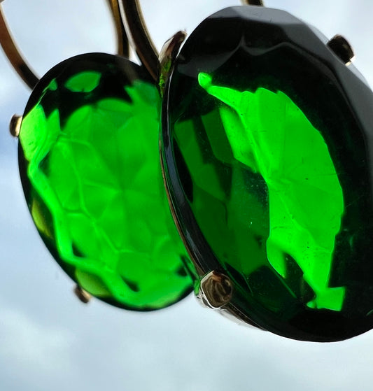 Enchanting Emerald Green and Diamante 1980s Earrings
