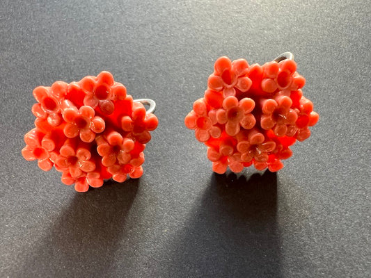 Vintage Coral Pink Little Bunch of Flowers Clip On Earrings