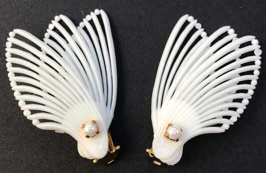 Pearl Centred 1950s Wing Shaped clip on Earrings