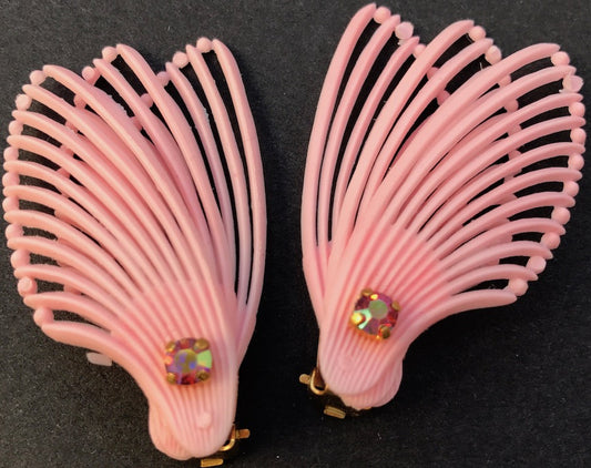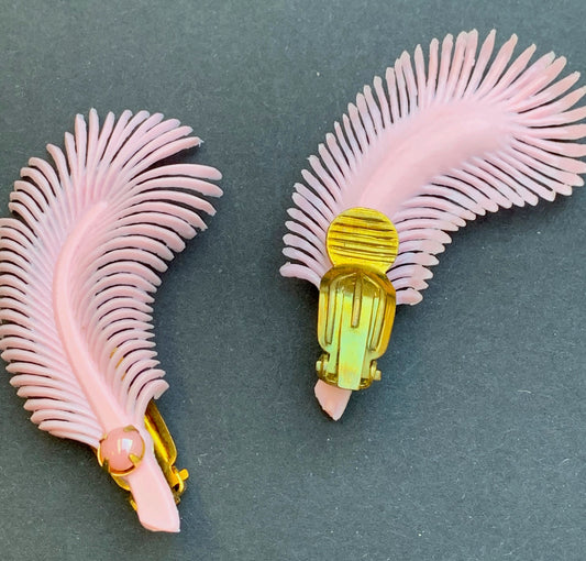 Whimsical Pink Feather Vintage Clip-on Earrings