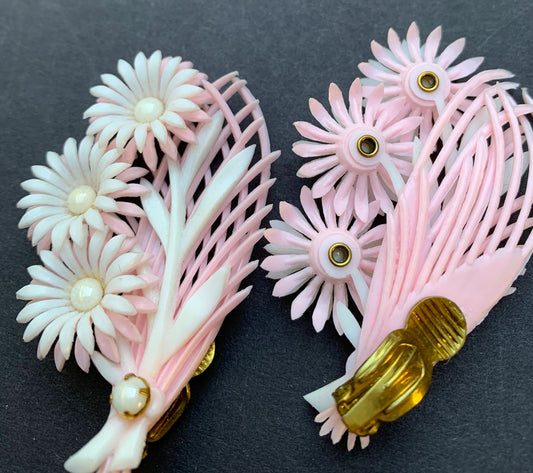 Angelic 1950s Pink & White Flower Clip-on Earrings