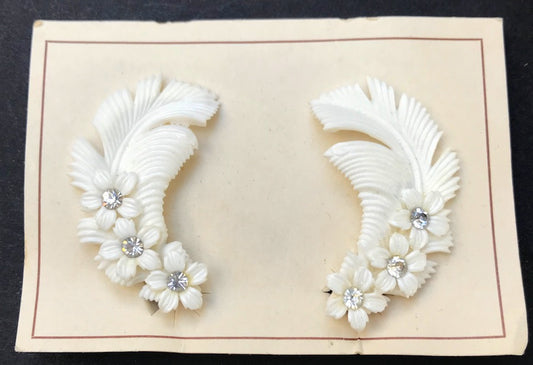 Pleasing Diamante Flower and Feather Vintage Clip-on Earrings