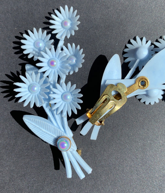 Peaceful Pale Blue Flowers Vintage Clip-On Earrings