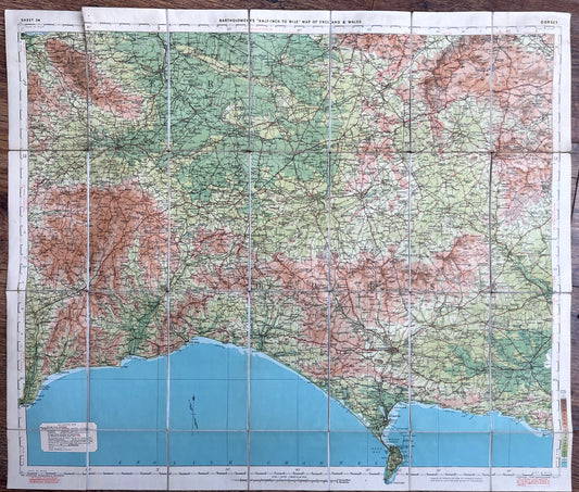1920s Bartholomew's Map of DORSET and SOMERSET(Sheet 34)