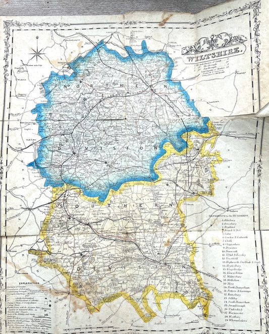 Fascinating 1800s Political Map of WILTSHIRE with it's RAILWAYS