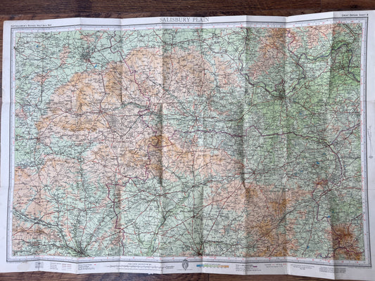 1940s/60s Bartholomew's Map of SALISBURY PLAIN incl. Reading, swindon, Newbury etc