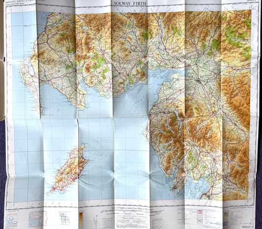 The Solway 1940s & 1950s Cloth mounted Maps Sheet 38. Incl. Carlisle, Penrith, Dumfries.
