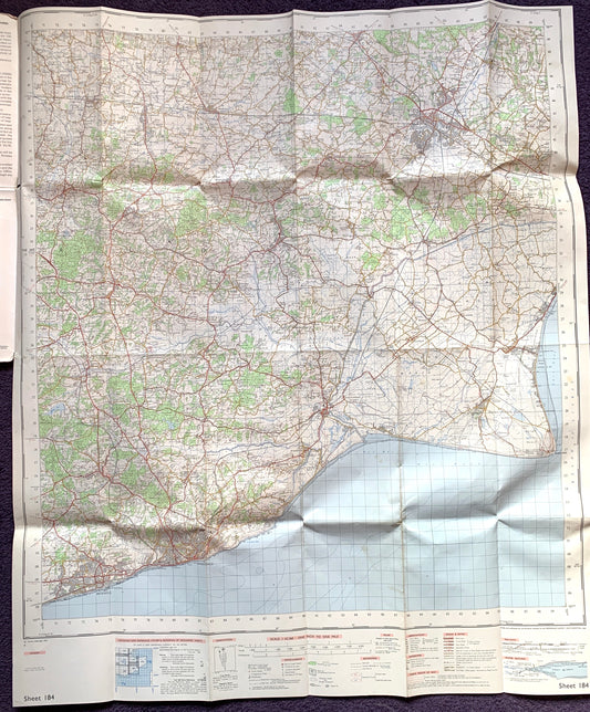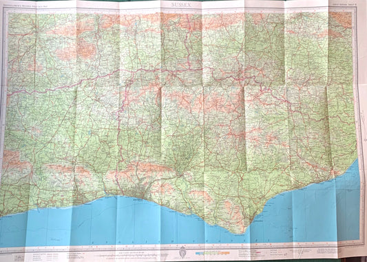 Sheet 32 Sussex 1930s to 1950s Bartholomew "Half-Inch" Contoured Maps incl Brighton, Tunbridge Wells, Hastings