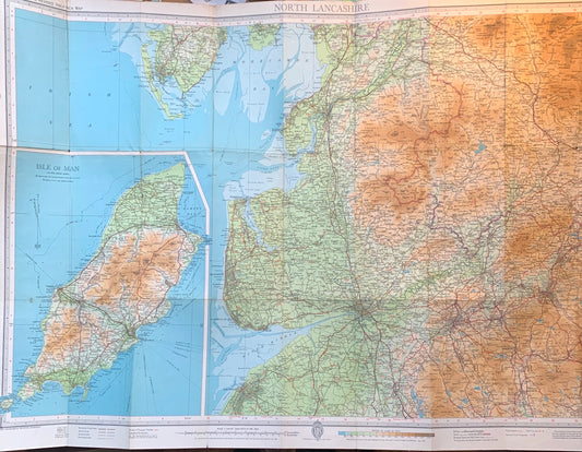1940s & 1950s Cloth Mounted Maps of North Lancashire Sheet 31. Incl. isle of Man, Preston, Blackpool, Rochdale, Southport.