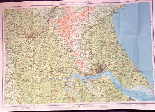 1952 Bartholomew's Map of S YORKS & HUMBER on Cloth
