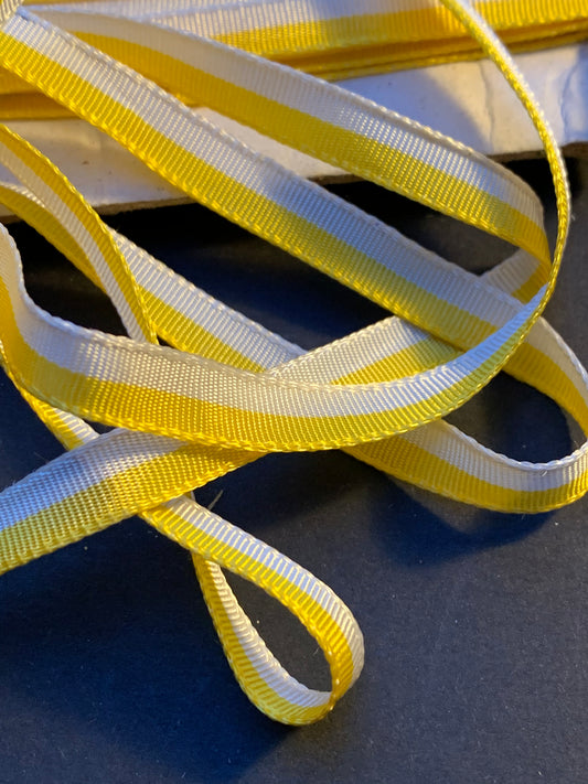 1m Swiss 7mm wide Yellow and White Vintage Crosgrain Ribbon