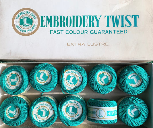 Vintage Green Extra Lustre Cotton Embroidery or Darning Thread 10 balls x 22m (32)