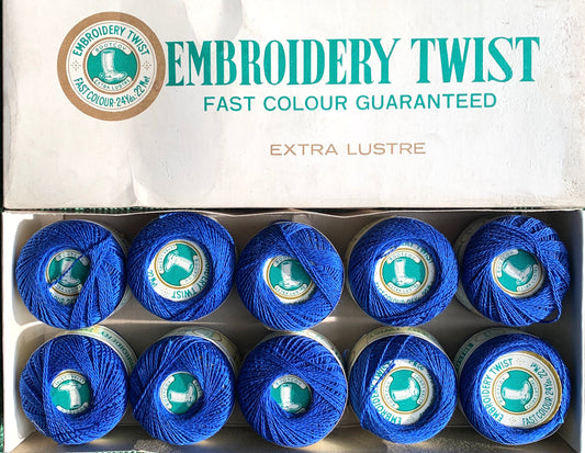 Vintage Bright Blue Extra Lustre Cotton Embroidery or Darning Thread 10 balls x 22m (21)