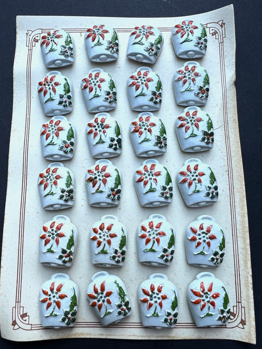6 Unusual Vintage Italian Red Cowbell Buttons - 2cm tall