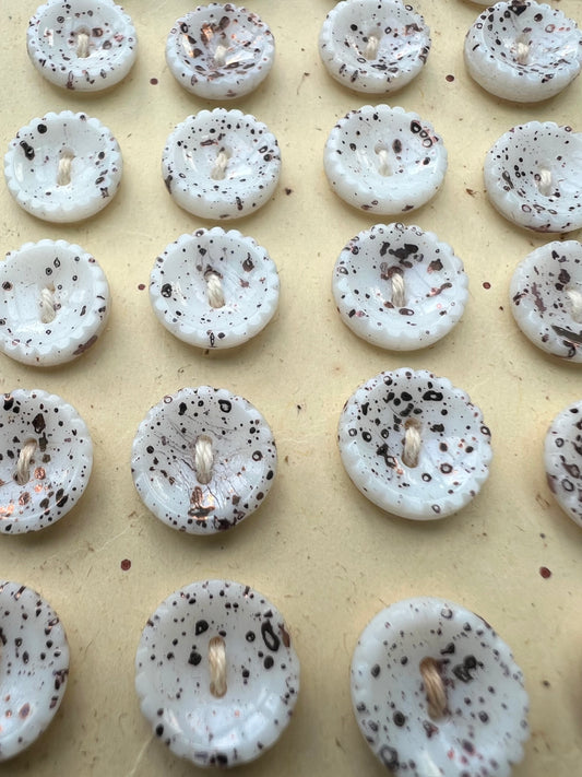 24 Unusual Vintage White Glass Paint Spatter 1cm Buttons