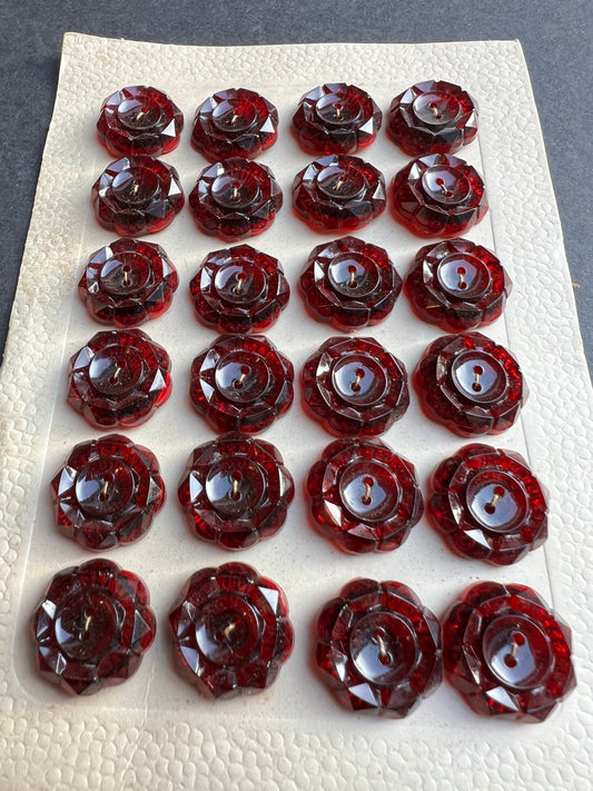 6 Glorious Vintage 2cm Red Glass Flower Buttons