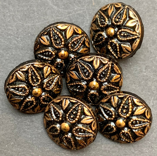 Dramatic Black and Gold Vintage Glass Buttons - 1.4cm or 2cm