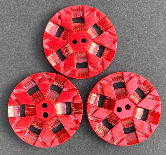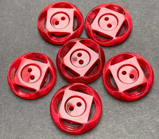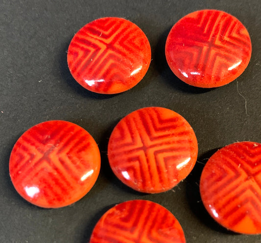 6 Vintage 1960s Italian 1.5cm Geometric Red Buttons