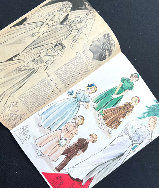 DEMACHY-PATRON Illustration on Cover of January 1950 French Modes & Travaux incl Dress Pattern + Designer Wedding Dresses