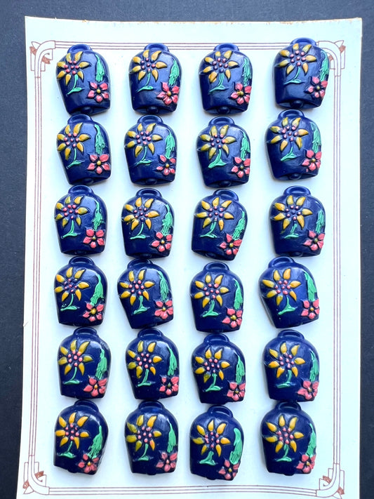 6 Unusual Vintage Italian Blue Cowbell Buttons - 2cm tall