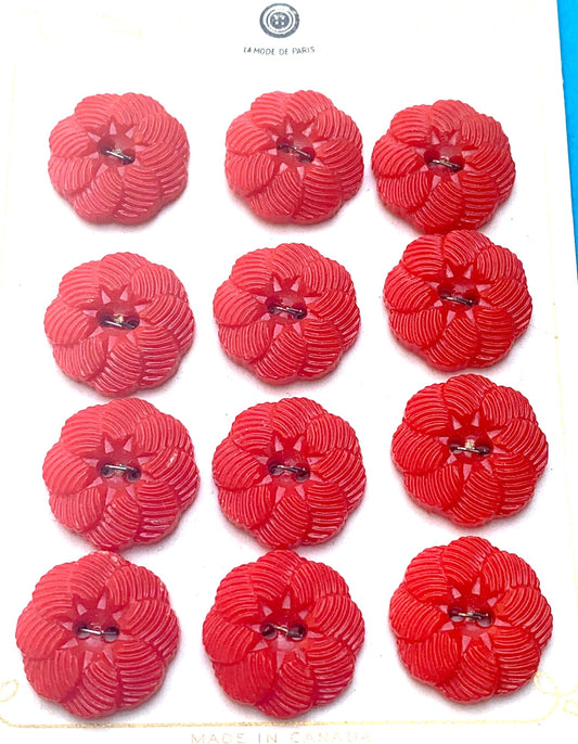 12 Glorious Red Vintage Flower 1.5cm Buttons