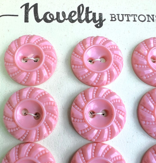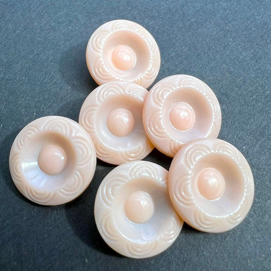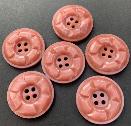6 Vintage 1.5cm Crepe Pink Deco Buttons