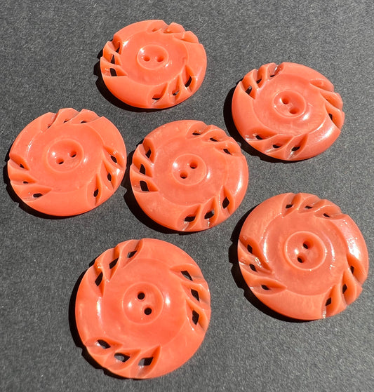 6 Pumpkin Coloured 2.2cm Vintage Buttons