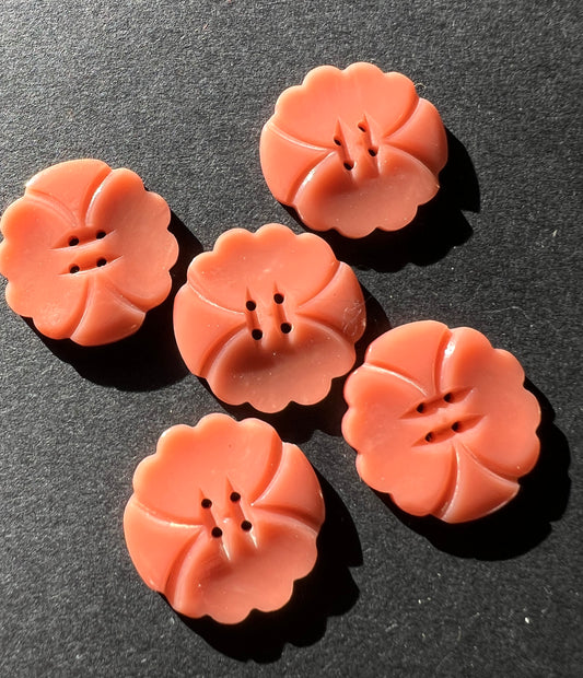 5 Coral Pink 2.2cm Vintage French Buttons