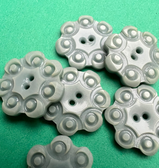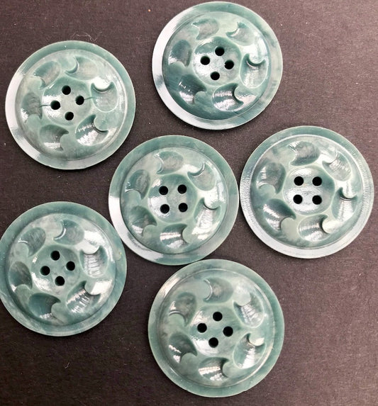 6 Soft Grey Green Vintage French 2.2cm Buttons